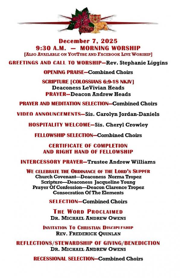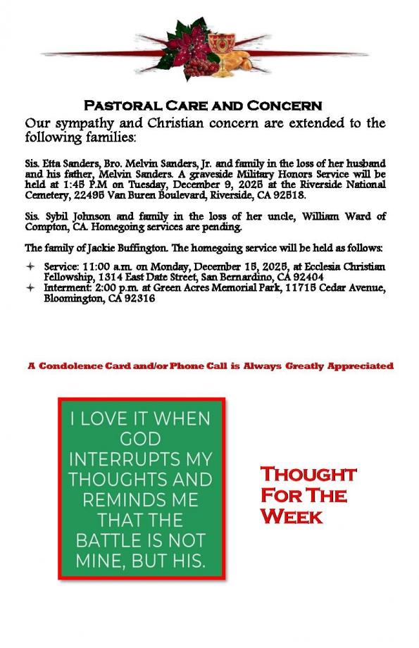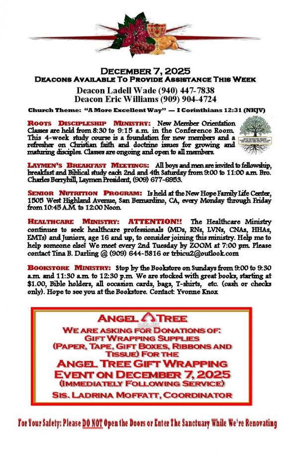 CHURCH BULLETIN - WEEK OF DECEMBER 7TH, 2025