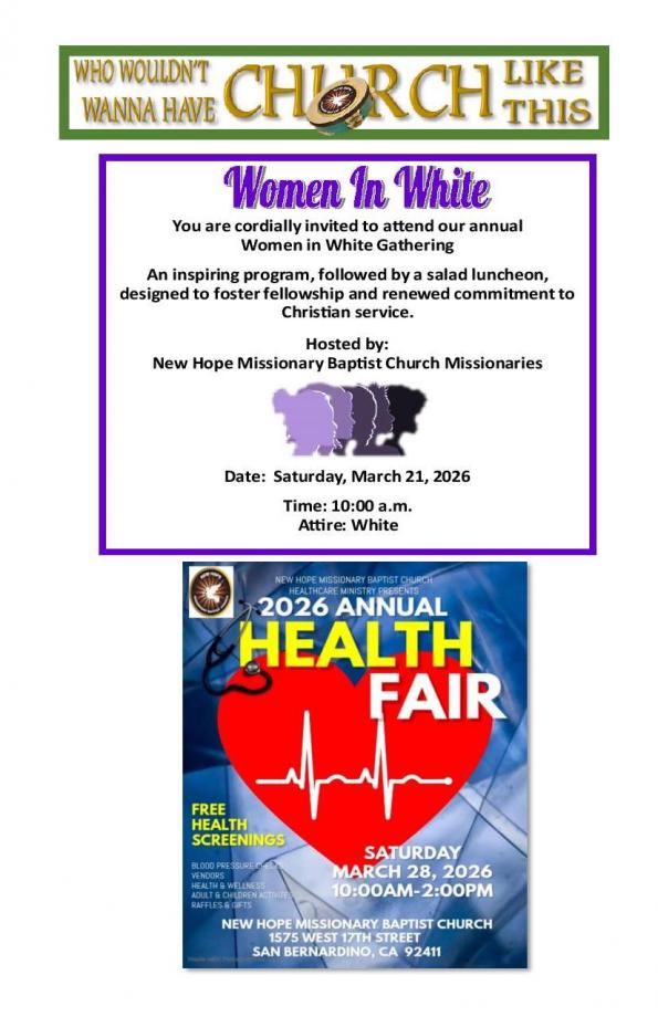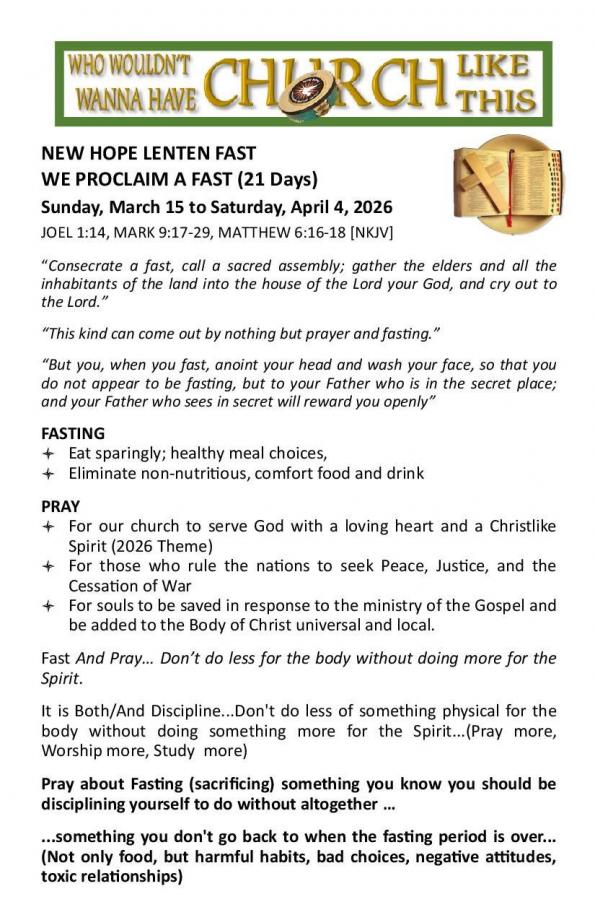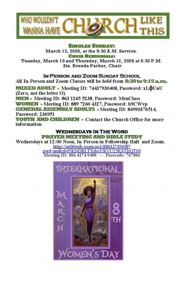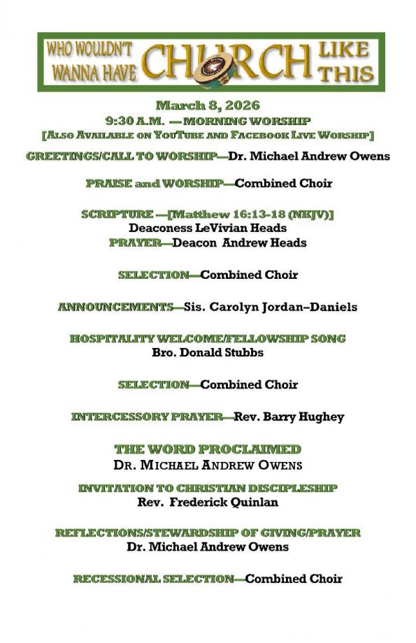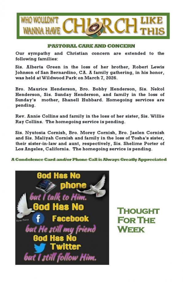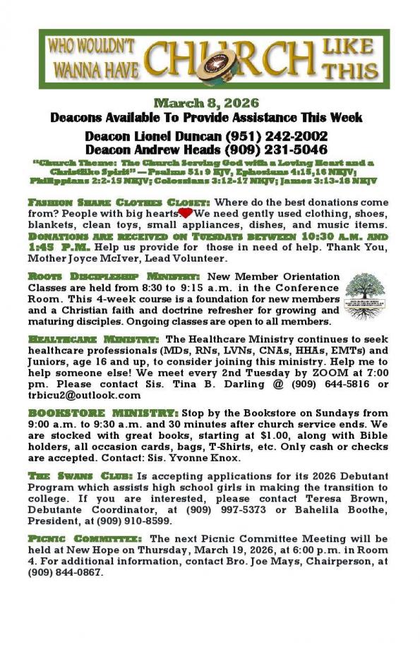 CHURCH BULLETIN - WEEK OF MARCH 08TH, 2026