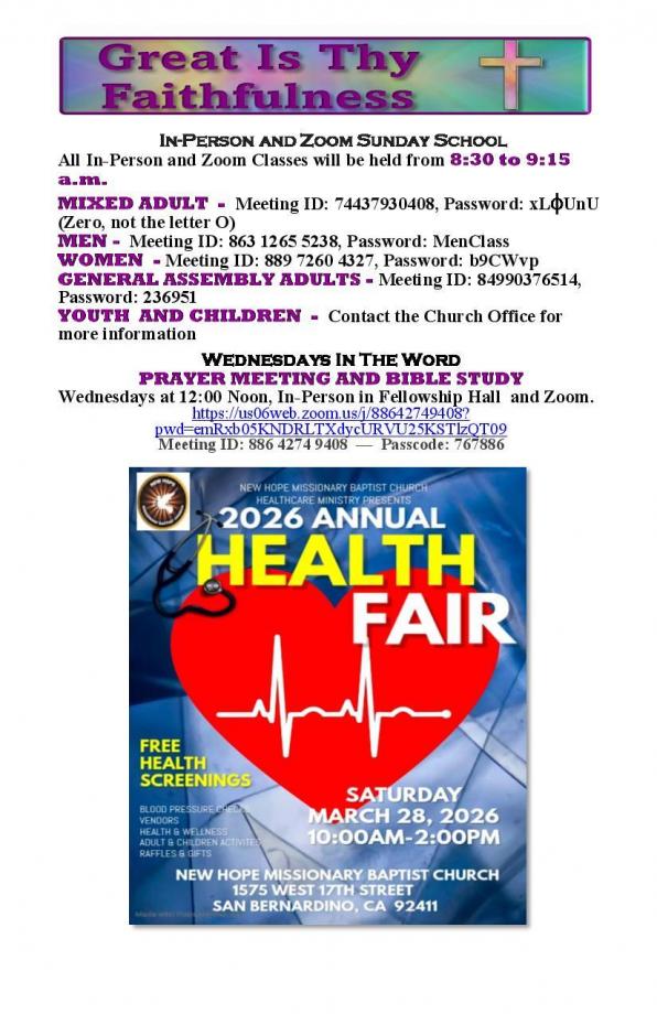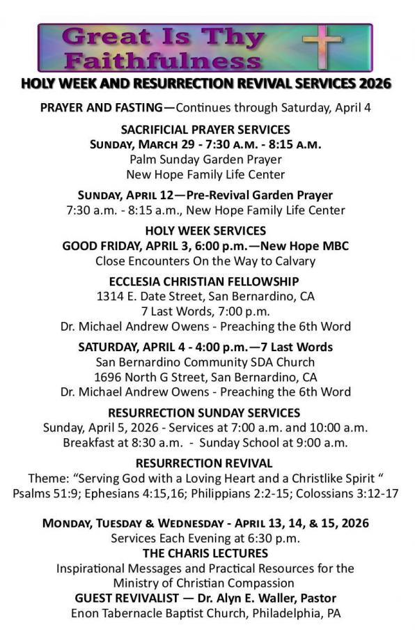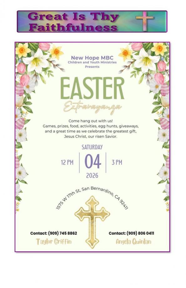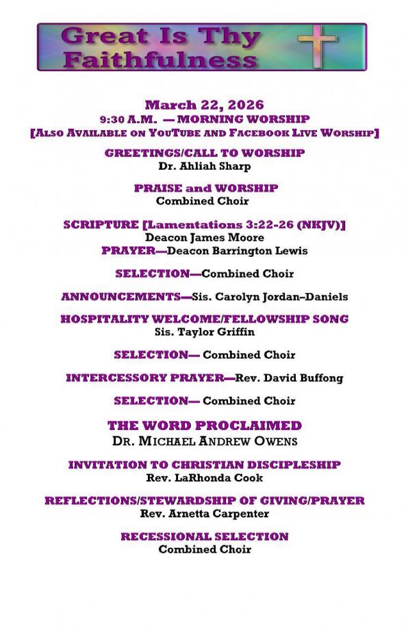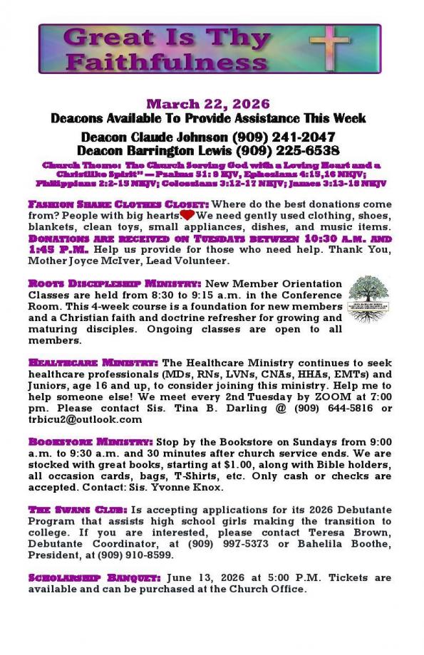 CHURCH BULLETIN - WEEK OF MARCH 22ND, 2026