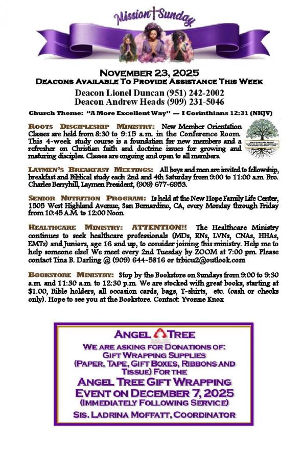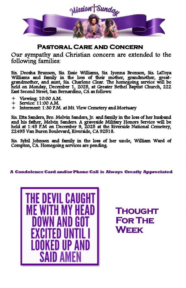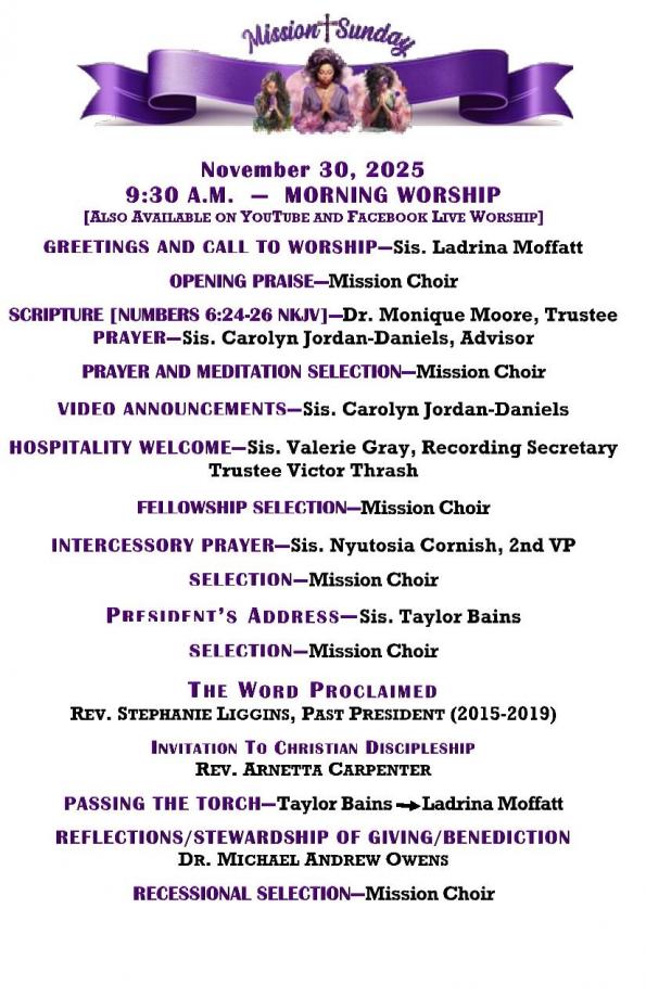 CHURCH BULLETIN - WEEK OF NOVEMBER 30TH, 2025