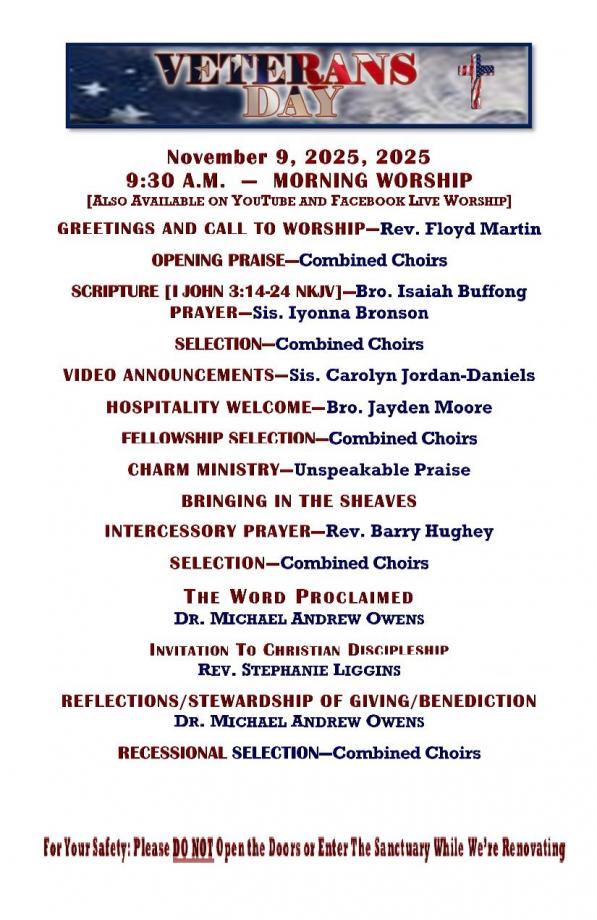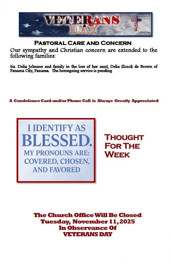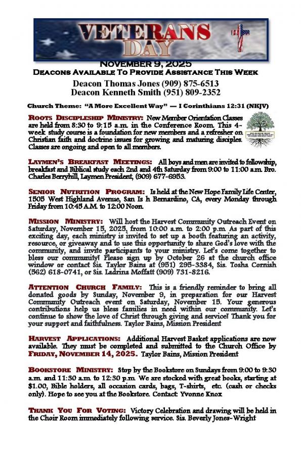 CHURCH BULLETIN - WEEK OF NOVEMBER 9TH, 2025