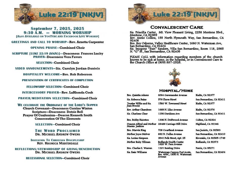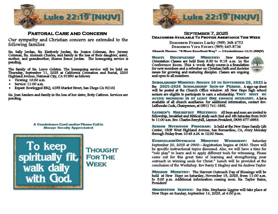 CHURCH BULLETIN - WEEK OF SEPTEMBER 7TH, 2025