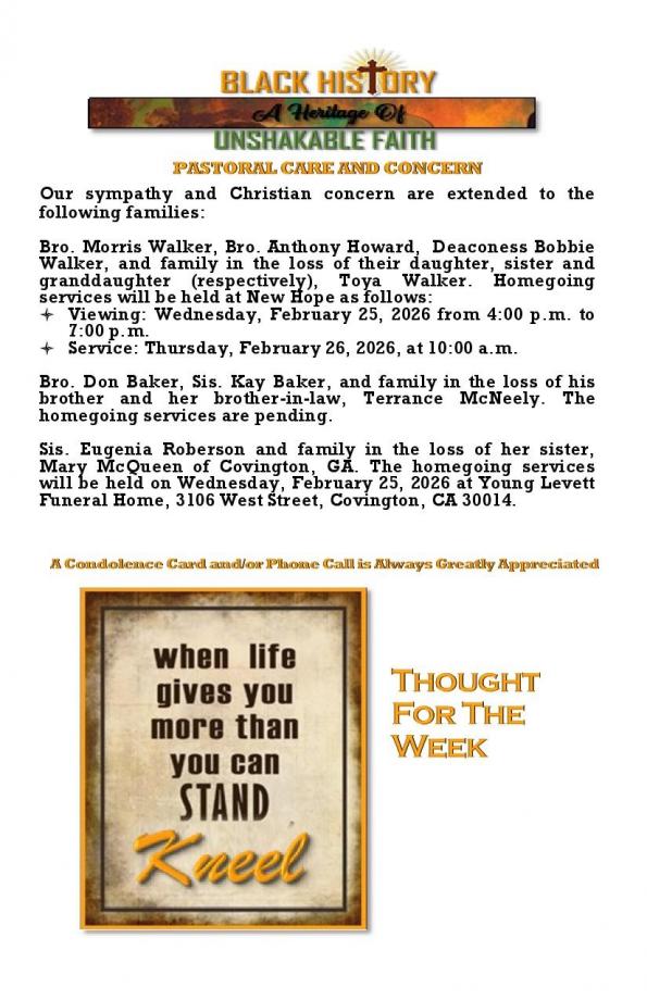 PASTORAL CARE AND CONCERN 02-22-2026